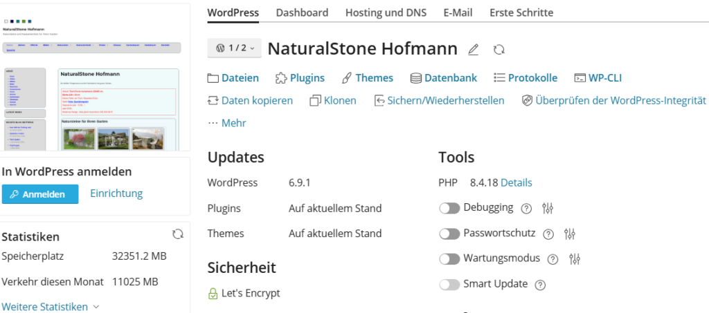 Mit einem Staging der eigenen Webseite, also einer Kopie, kann man gefahrlos pröbeln. Und wenn es gut ist, kann man das Staging, die Kopie zurück zum Original kopieren. Und wenn der Versuch nicht gut war, kann das Staging einfach gelöscht werden ohne dass die originale Webseite beschädigt wurde.