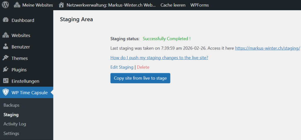 Bei anderen Providern, welche das Staging nicht anbieten, kann es mit einem Plugin realisiert werden.